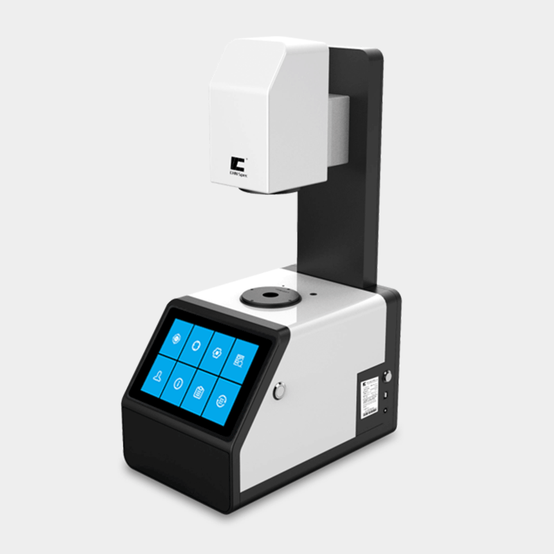 仪器具备开放式测量区域,有竖放和横放两种测量状态,横放时可搭配定位支架来使用。